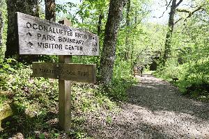 The Oconaluftee River Trail is a 1.6-mile-long pedestrian and bike trail that connects the park's Oconaluftee Visitor Center and Mountain Farm Museum to downtown Cherokee. The trail is used by more than 100,000 people each year.